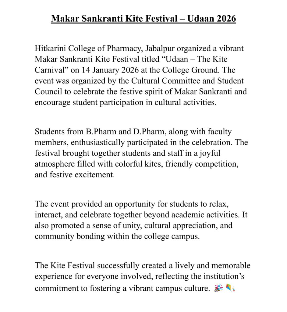 CULTURAL AND SPORTS CLUB Cultural and sports constitution Event Report- World Pharmacist day- 2.Makar Sakranti Kite Festival– 3.Republic Day-